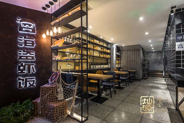 海盜蝦皮主題餐廳空間采用點線面設(shè)計手法,干凈利落,簡約時尚,整個南寧餐廳裝修空間采用整體性打造,色調(diào)穩(wěn)重淡雅!