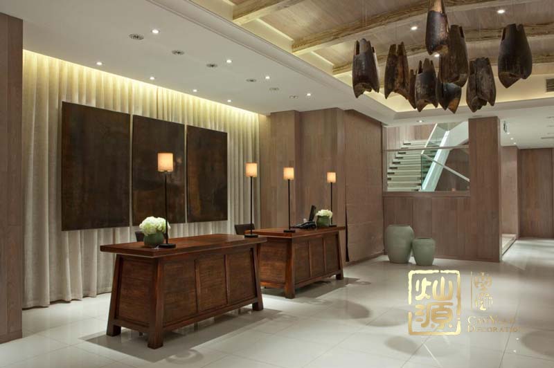 田元餐廳設(shè)計,南寧餐廳裝修要素二:接待區(qū)原木的座椅和木質(zhì)桌子搭配,給人一種樸實的味道。在搭配原木的柜子,使整個氛圍更濃郁。別具一格的吊燈,使空間充滿奢華感,將整個中式田元味道展現(xiàn)在人們面前。