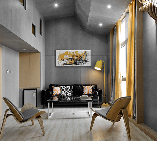 本案是一個由兩套40平方的小戶型打造而成,作為南寧小型展廳空間裝修,設(shè)計師利用了層高4.3米的優(yōu)勢,通過增加部分閣層,將本不大的面積進(jìn)行放大。鑒于原始建筑結(jié)構(gòu)中的梁位粗大而低沉,設(shè)計師并未做過多的處理,而是利用幾何構(gòu)造,將梁位融入到整個空間,讓原有的空間更具層次感和立體感。作為南寧小型展廳空間裝修、南寧LOFT展廳設(shè)計的樣版,設(shè)計師在設(shè)計上,簡化了繁雜的修飾,采用水泥板、木飾面板、槽鋼等簡單的材料,將硬朗的工業(yè)風(fēng)和簡約的現(xiàn)代風(fēng)的結(jié)合~