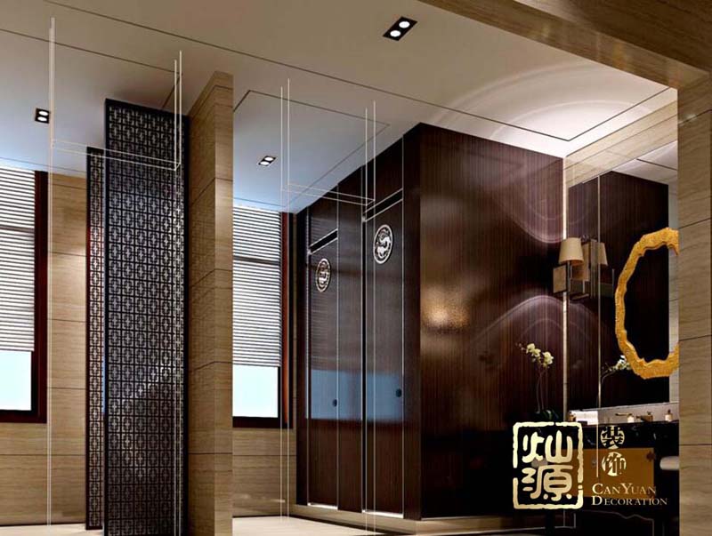 南寧浴足城設(shè)計(jì)前廳過(guò)道:深色實(shí)木為主,局部點(diǎn)綴鮮艷濃麗的色調(diào),不著痕跡地顯露出幾分氣息,營(yíng)造一種沉穩(wěn)大氣,富麗堂皇的異國(guó)情調(diào)。